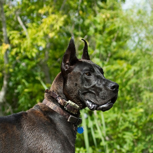 Di taglia gigante e dall’atteggiamento aristocratico, l’Alano Tedesco si distingue per la sua figura slanciata ed elegante. Condivide con il Levriero Irlandese il primato di altezza tra le razze canine. Pur essendo spesso considerato un cane da guardia, l’Alano Tedesco è in realtà docile e un eccellente compagno, grazie alla sua intelligenza e alla sua natura affettuosa.